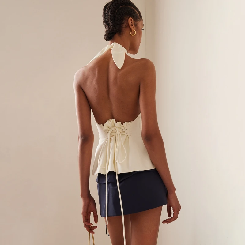 Women's Backless Cami Crop Top Summer Solid Color Casual Sleeveless Streetwear Y2K Top