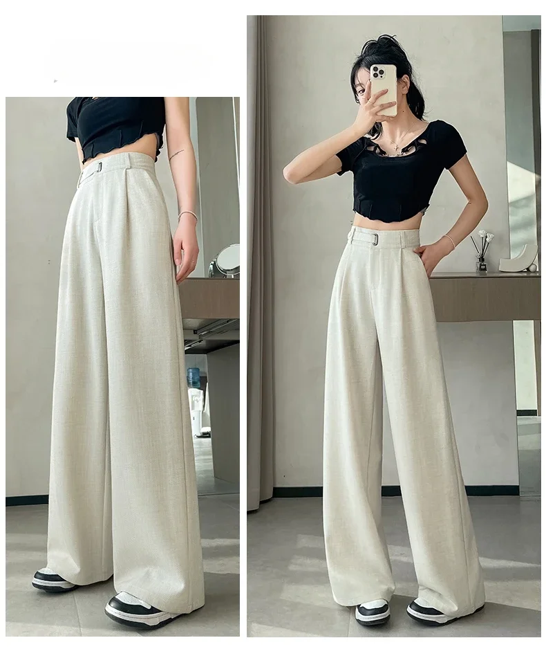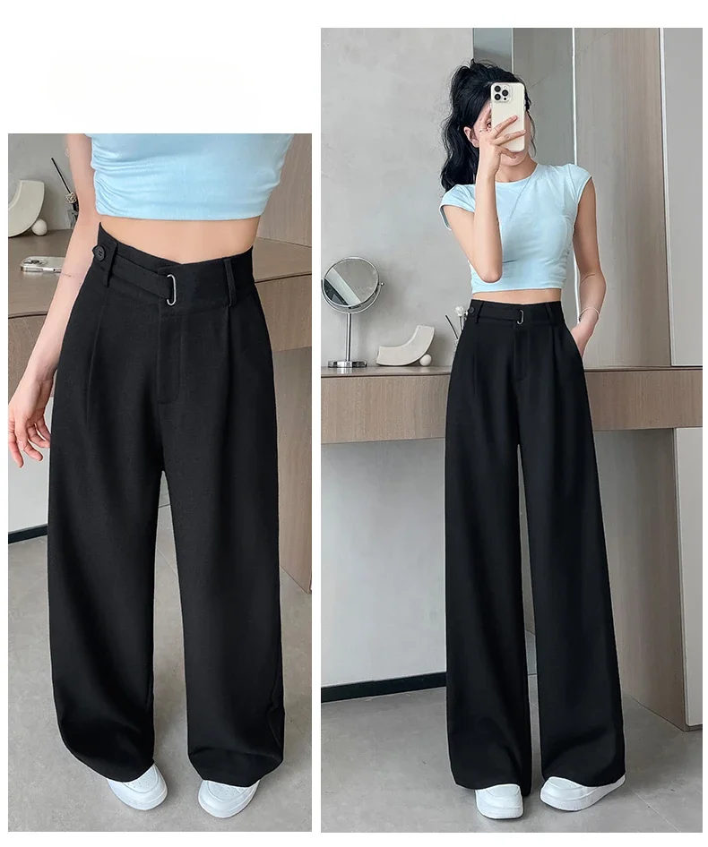 Seoulish Spring Summer Elegant Button Women's Wide Leg Pants 2025 New High Waist Solid Casual Loose Straight Trousers for Womens RT220